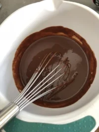 3. Add 1 egg plus 1 egg yolk to bowl then slowly add chocolate mixture to egg. Don't stir too fast and scramble the egg!
